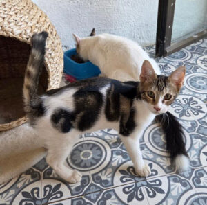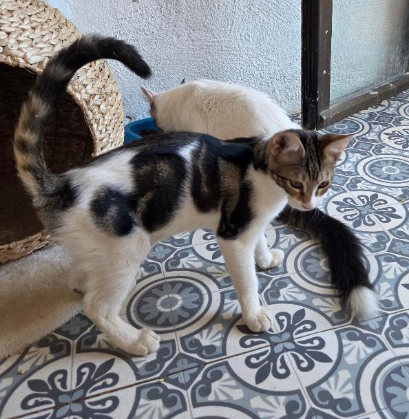 Mit anderen jungen Katzen kommt Wobbel gut klar, sie sollten allerdings sehr sozial und nicht zu wild sein da sie ihn sonst überfordern.