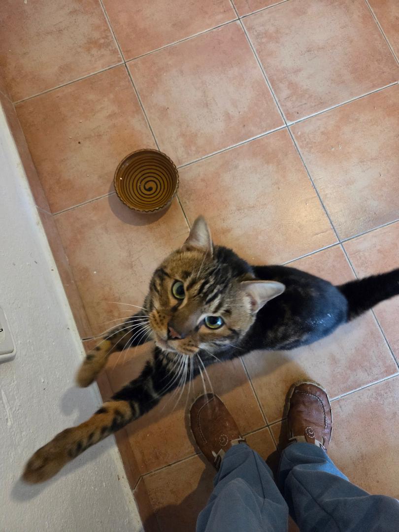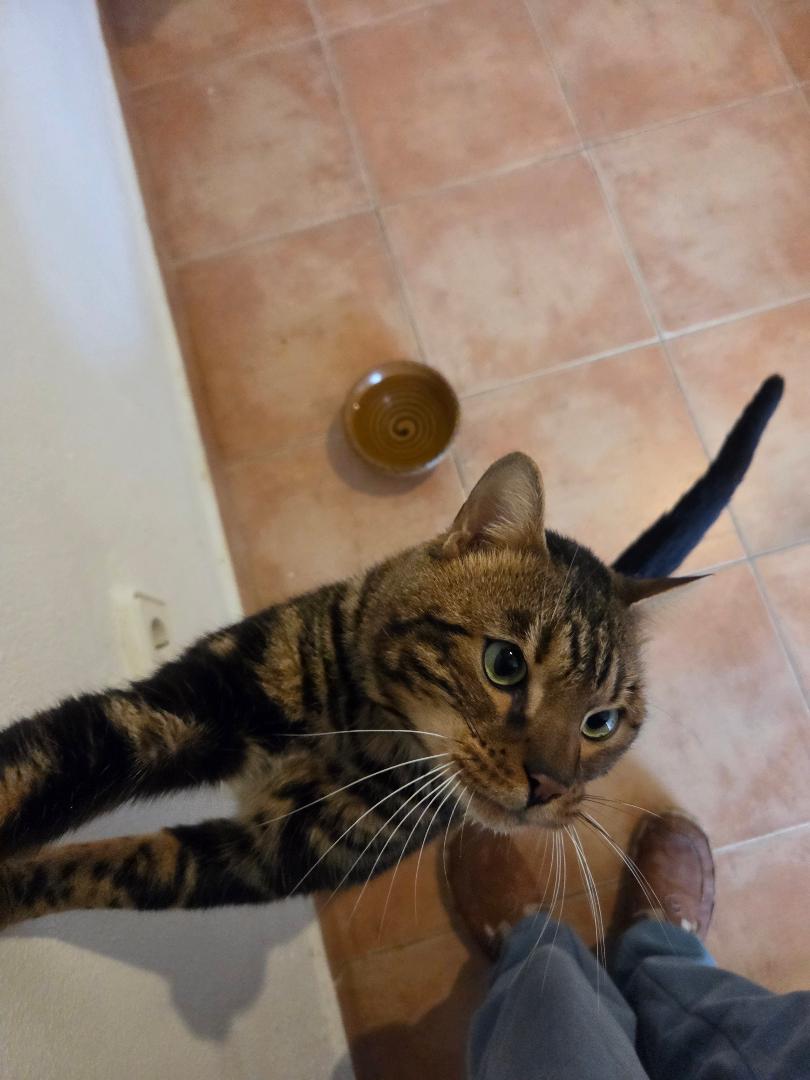 Man bat uns Mau aufzunehmen, da man wollte, dass der sehr liebe Kater diesmal in die richtigen Hände kommt. Denn auf der Strasse sollte er nicht noch einmal landen! Mau ist mit Wohnungshaltung mit Balkon zufrieden, wobei natürlich auch ein gesicherter Garten toll für ihn wäre. Er möchte seine Menschen um sich herum haben und nicht täglich 8-10 Stunden alleine zuhause sitzen. Für ihn wäre jemand mit Homeoffice toll, oder ein Haushalt wo Mittags Kinder von der Schule kommen und mit ihm zusammen Hausaufgaben machen wollen. Er schmust total gerne, liebt es Aufmerksamkeit zu bekommen und dass man sich mit ihm beschäftigt, schmust, spielt. Natürlich ist er kein wildes Kitten mehr, aber er ist halt wie Bengalen so sind, aktiv.