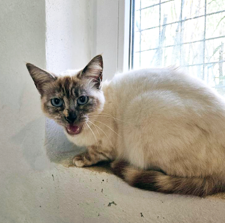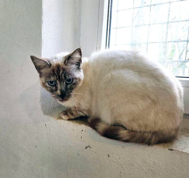 Wir sagten zu und holten Prami und einen weiteren Siamkater ab. Beide sind jetzt getestet und kastriert, haben ihren Chip und sind im Impfprozess. Vom Wesen her ist Prami eine liebe Katze, die sich gerne kraulen lässt, sich vergnügt auf dem Boden herumrollt und sehr sanft ist. Sie kann als Einzelkatze abgegeben werden, oder eventuell mit dem anderen Siamkater zusammen ausziehen.